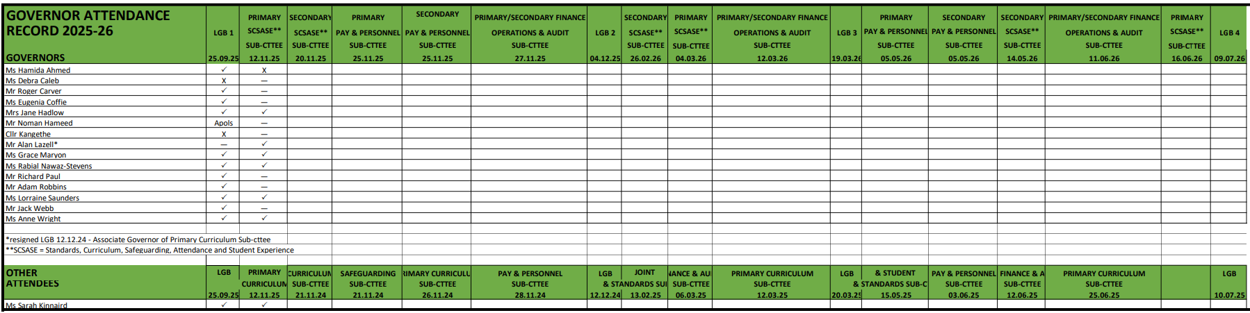Please click on the link below to view the governor attendance at meetings for previous academic years: